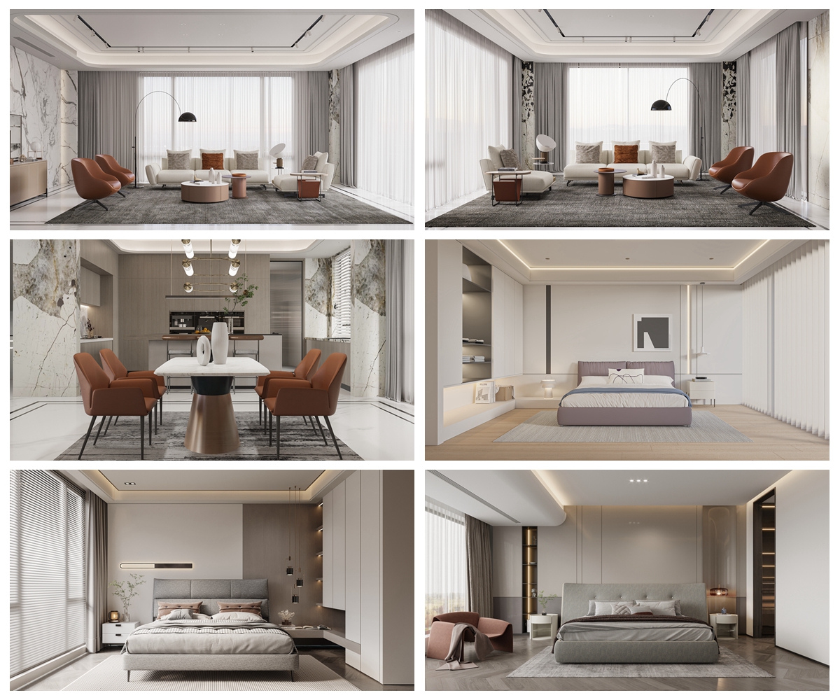 在簡(jiǎn)約的基礎(chǔ)上注入恰到好處的奢華感。保留意式設(shè)計(jì)的優(yōu)雅線條,但細(xì)節(jié)更考究。運(yùn)用金屬、絲絨、大理石等元素提升精致度。色彩更為豐富柔和,注重材質(zhì)的對(duì)比與融合,營(yíng)造低調(diào)而迷人的氛圍。