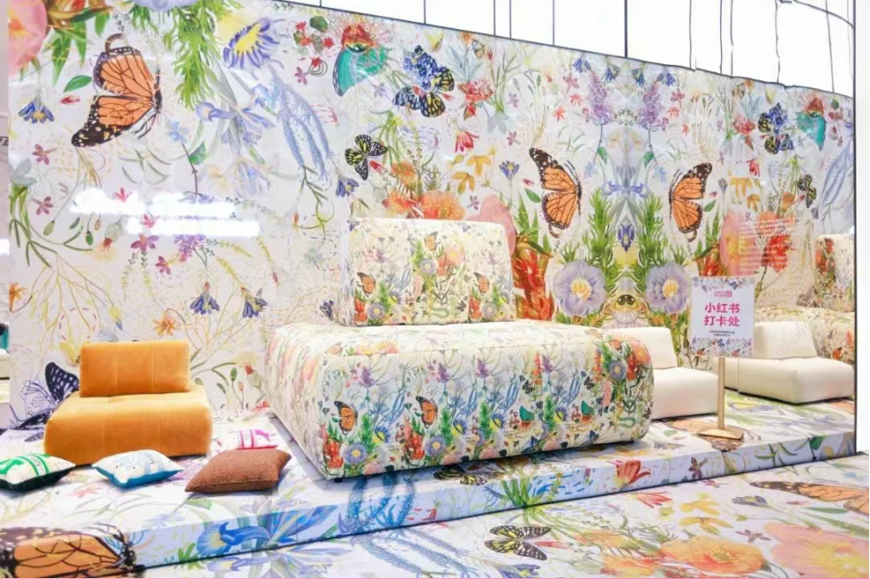 愛依瑞斯更創(chuàng)新將紋樣轉(zhuǎn)化為高精度印花面料,讓沙發(fā)化身“藝術(shù)展館”。高還原度的鮮亮色彩點(diǎn)綴在淡雅純色的沙發(fā)上,像一簇盛放的花,芬芳?xì)庀⒎氯艨M繞鼻尖。當(dāng)沙發(fā)被紋樣全面包裹,便成了一座永恒綻放的春日花園,美麗、寧靜、和諧、浪漫……一切美好此刻都在家里生長。