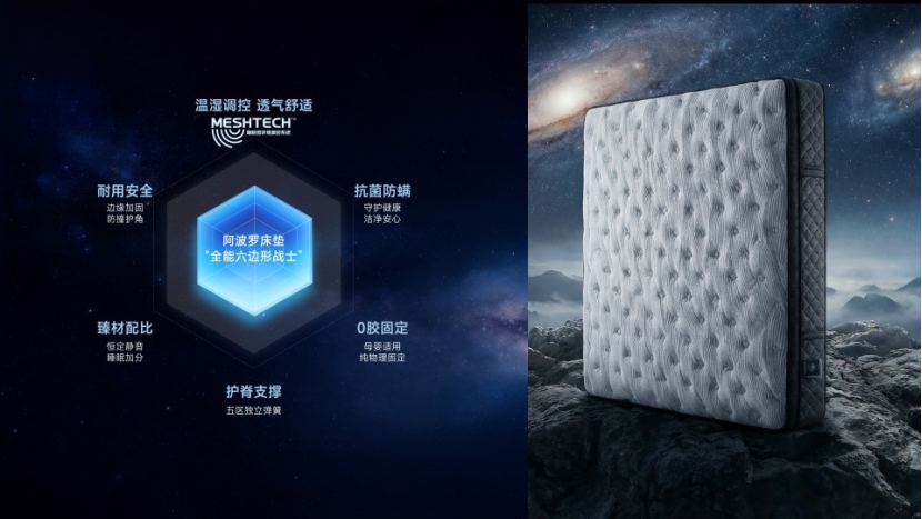 此次發(fā)布中,愛依瑞斯重點介紹的 MESHTECH睡眠微環(huán)境調控系統(tǒng),正是率先應用于新品阿波羅床墊中的核心技術。相較于傳統(tǒng)床墊更多停留在軟硬度和支撐感層面的改善,MESHTECH更聚焦用戶在真實睡眠中普遍面臨的微環(huán)境困擾,例如剛躺下時遲遲難以放松、夜間悶熱出汗、濕氣滯留帶來的黏膩不適,以及因溫濕波動引發(fā)的頻繁翻身、淺睡和睡眠中斷。